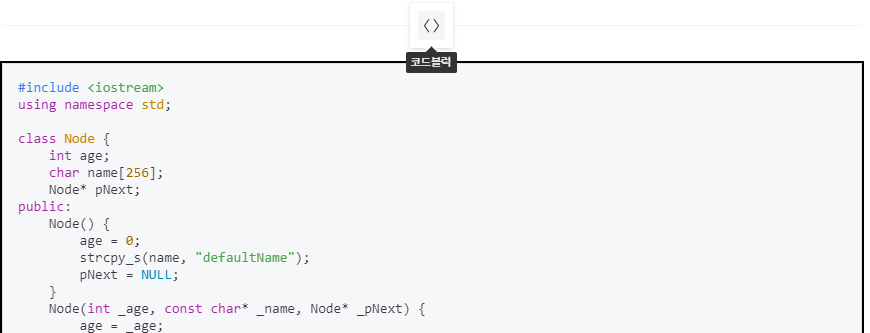 티스토리에는 소스코드를 깔끔하게 넣을 수 있는 기능이 있습니다.