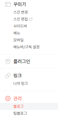 먼저 블로그 관리에 들어가셔서 '블로그'를 클릭해서 들어갑니다.
